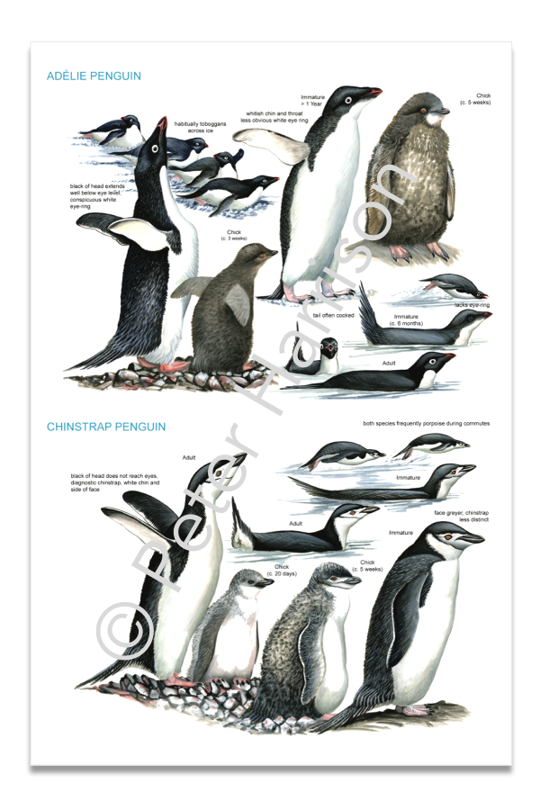 In the case of the 239 seabird art plates, each impression is limited to just 100 and bears the name of the artist, the edition number, the edition size, plus a title. Convention dictates that these must all be completed in pencil, starting at lower left. Thus, for example: “15/100, Adélie Penguin and Chinstrap Penguin, Harrison 2017” indicates that the impression in hand is 15th in the series of 100 and that the work is signed and approved by the artist, Harrison, in the year 2017. The artist’s name and signature on an Artist’s Proof can increase the value by 3- or even 4-fold as it is the “mark of approval” and attests to its authenticity.